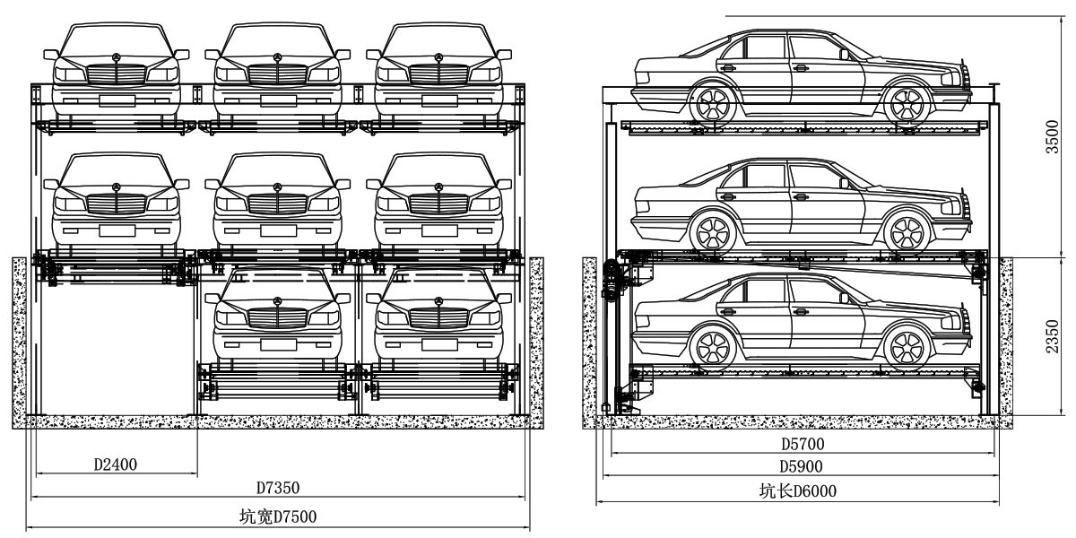 設(shè)備安裝凈高度 | 地坑深度≥2000mm 地上高度≥3600mm |