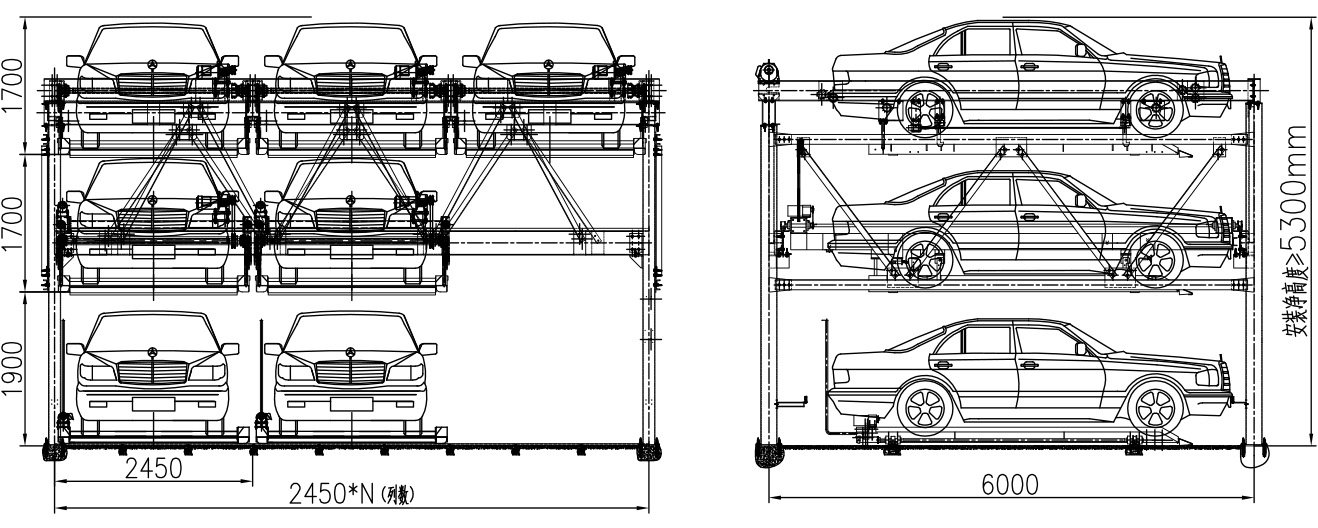 設(shè)備安裝凈高度 | 三層≥5300mm;四層≥7000mm |